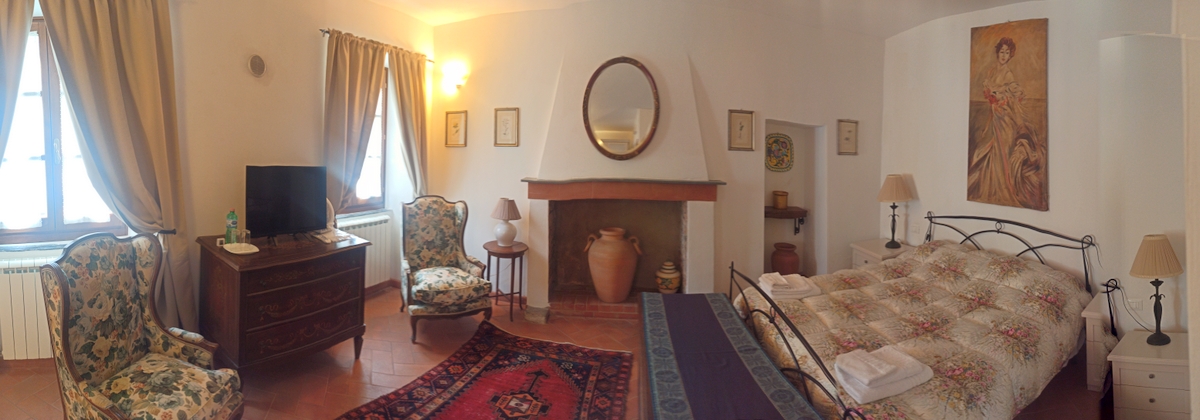 Questa camera matrimoniale, si trova al primo piano, con vista sulla piazza del Borgo. La camera è ampia, luminosa ed accogliente.